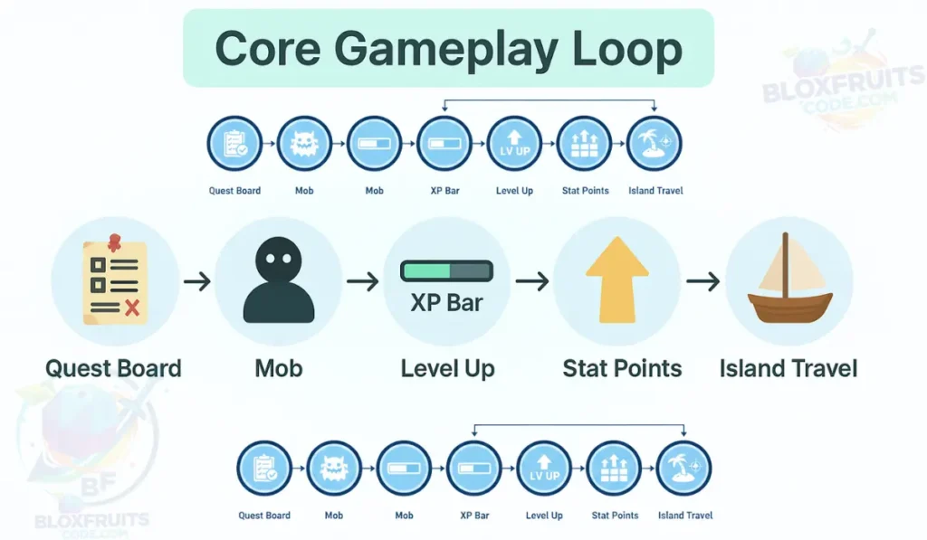 Leveling in Blox Fruits depends on fighting mobs that match your level. You switch islands when XP starts slowing down.